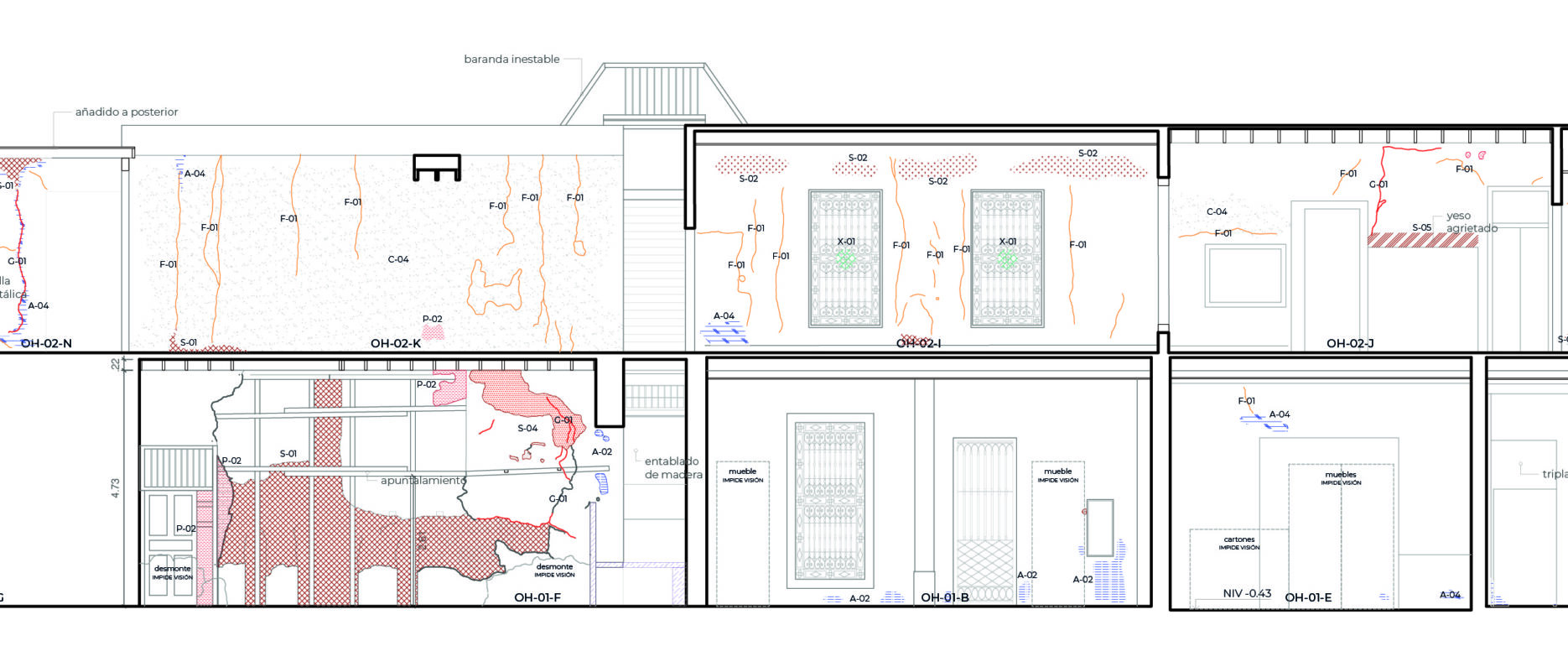 Conjunto de casas-patio de propiedad privada de dos pisos, hechas de adobe, quincha y madera, construidas en el siglo XIX; ubicadas en el centro histórico de Lima y actualmente utilizadas como vivienda, comercio y cultura. En preparación para un proyecto de conservación, mejoramiento y adaptación para nuevos usos respetando su autenticidad, integridad y su condición de Monumento; realizamos un diagnóstico legal-patrimonial, documentación fotográfica, planimetría detallada, así como visualizaciones en 3D que permitieron la elaboración del diagnóstico de estado de conservación del inmueble.